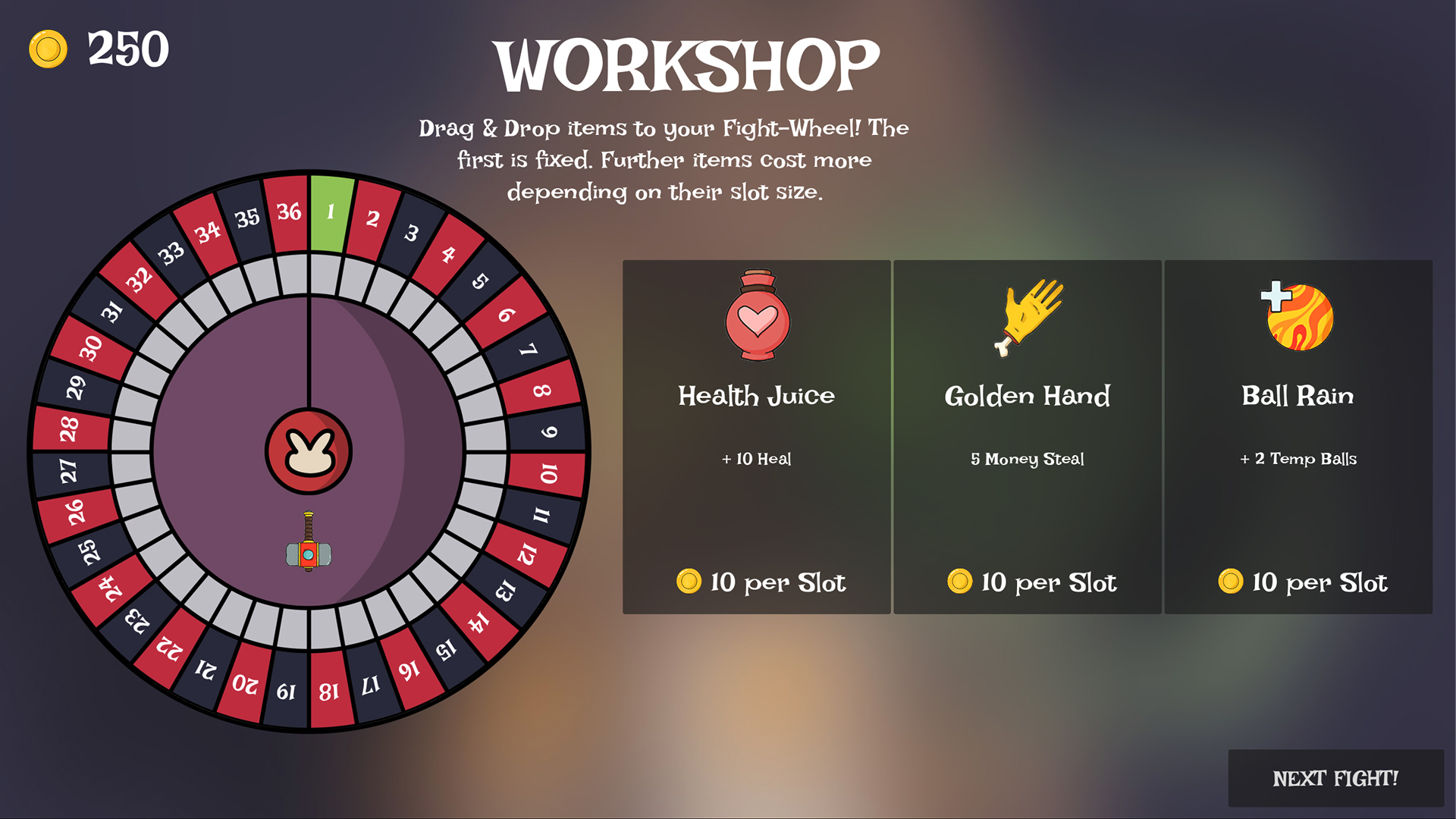 Roguelette is a PC roguelike deckbuilder where everything revolves around the wheel of fate. Customize your own roulette wheel, manipulate the odds in your favor, and beat the casino at its own game. Grow more powerful with every run and bet it all on victory!